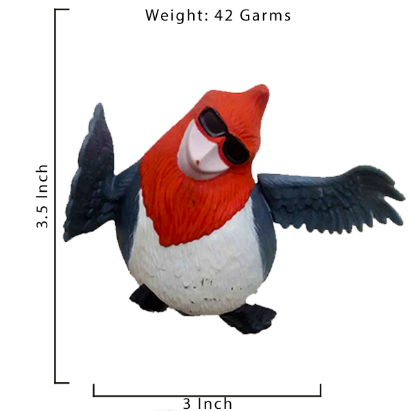 Black type bird Weight is 42 Garms.Width and Height is 3.5 Inch and 3 Inch