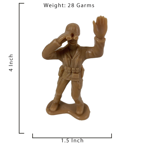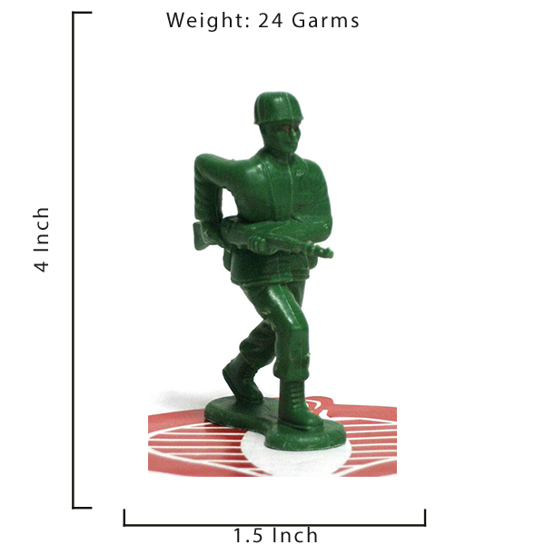 Green soldier Weight is 24 Garms.Width and Height is 1.5 Inch and 4 Inch