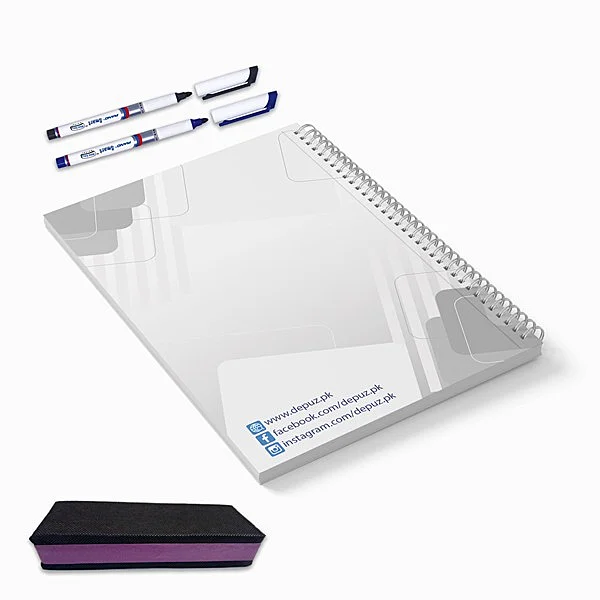 Perfect tool for anyone who loves brainstorming and wants to avoid paper waste when making temporary notes and doodles. Dont worry of making mistakes now and try Depuz's WipeBook Whiteboard Notebook.