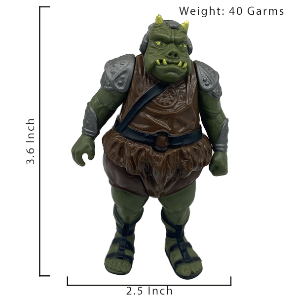 Green color toy Weight is 54 Garms.Width and Height is 2 Inch and 4 Inch