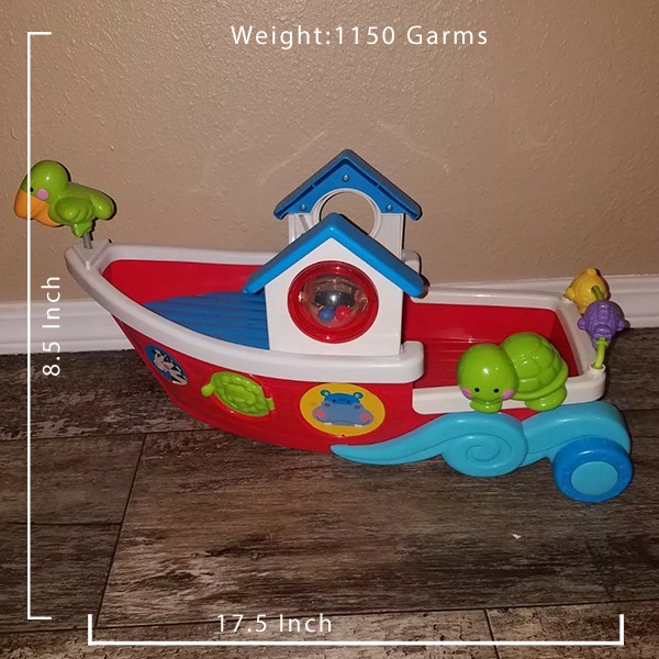 In good used, working condition with some play wear. Some marks on the gorilla’s face and on the boat. Also the starboard porthole does not click shut. See photos