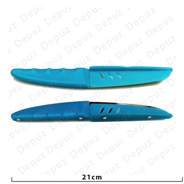 Very beautiful knife with Protective cover light blue,green color, very sharp edges, multiple uses